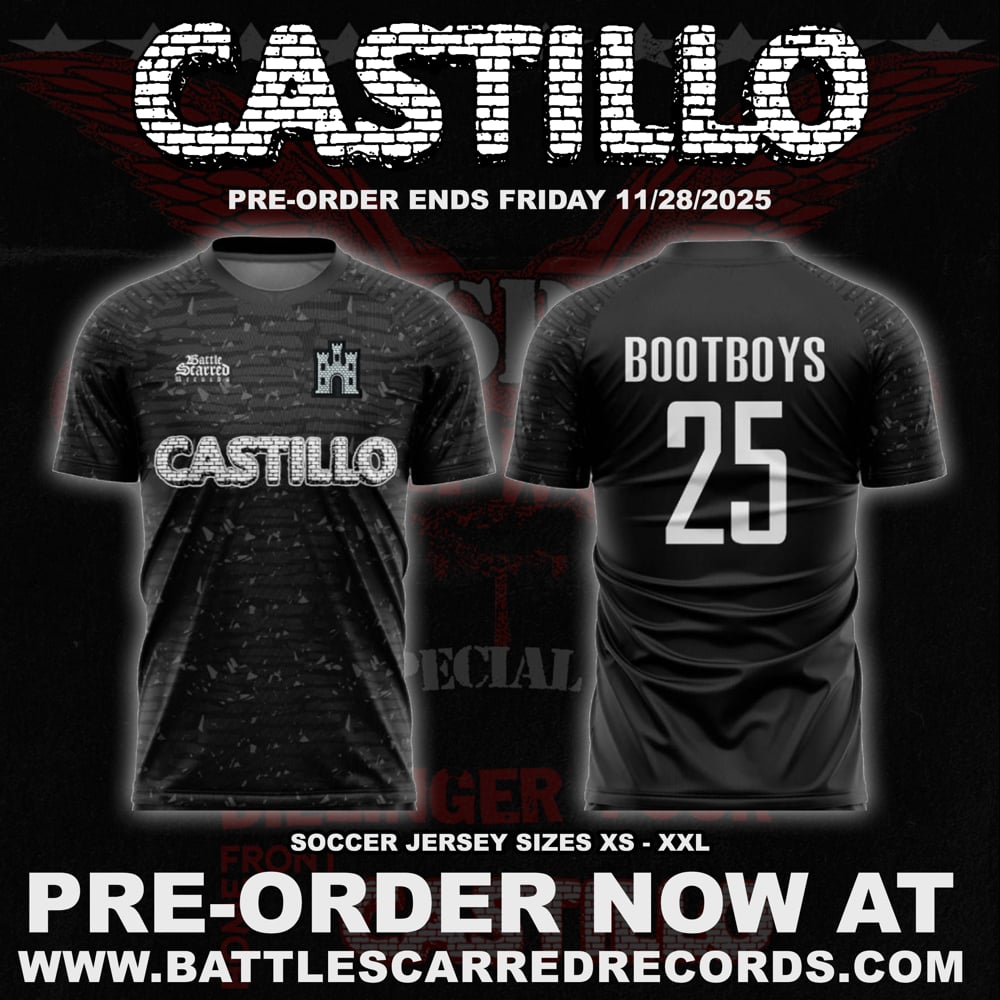 We made a very limited amount of Castillo soccer jerseys made for the show with Cock Sparrer 11/22/25 at the Hollywood palladium. Due to high demand for the people who missed it at the show or could not make it to the show, we decided to do a pre order so everyone gets a chance to get a jersey.